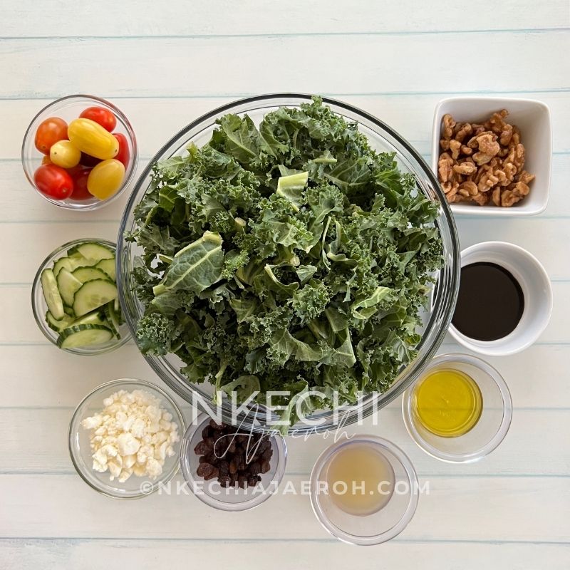 one size-medium wp-image-14428″ src=”https://nkechiajaeroh.com/wp-content/uploads/2025/08/Easy-Kale-Feta-Salad-Recipe-Ingredients-300×300.jpg” alt=”This is the only easy kale salad you need! This recipe is packed with crunchy kale leaves, feta cheese, walnuts, cucumbers, tomatoes, and a light fragrant date-apple cider dressing. If you love kale, then you will enjoy this healthy salad, but if you are skeptical about kale, then this will change your mind. Though this is a vegetarian salad, you can still add meat or fish of your choice to make it more filling. ” width=”300″ height=”300″ srcset=”https://nkechiajaeroh.com/wp-content/uploads/2025/08/Easy-Kale-Feta-Salad-Recipe-Ingredients-300×300.jpg 300w, https://nkechiajaeroh.com/wp-content/uploads/2025/08/Easy-Kale-Feta-Salad-Recipe-Ingredients-150×150.jpg 150w, https://nkechiajaeroh.com/wp-content/uploads/2025/08/Easy-Kale-Feta-Salad-Recipe-Ingredients-768×768.jpg 768w, https://nkechiajaeroh.com/wp-content/uploads/2025/08/Easy-Kale-Feta-Salad-Recipe-Ingredients-120×120.jpg 120w, https://nkechiajaeroh.com/wp-content/uploads/2025/08/Easy-Kale-Feta-Salad-Recipe-Ingredients-96×96.jpg 96w, https://nkechiajaeroh.com/wp-content/uploads/2025/08/Easy-Kale-Feta-Salad-Recipe-Ingredients.jpg 800w” sizes=”(max-width: 300px) 100vw, 300px” />